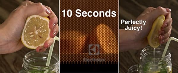 3. Vắt chanh nhanh ADVERTISEMENT Có những quả chanh to rất khó vắt, tốn khá nhiều sức, hãy thử cắt đôi quả chanh, làm nóng bằng lò vi sóng khoảng 10 giây rồi dùng tay vắt nước chanh vào trong chén, bạn sẽ thấy dễ dàng hơn nhiều. Chanh khó vắt nhưng sau khi làm nóng sẽ dễ vắt được nhiều nước. 4. Biến phô mai thành bánh Những ai thích ăn phô mai cũng có thể tự làm bánh phô mai. Trải một lớp giấy nướng lên đĩa rồi xếp phô mai lên, làm nóng bằng lò vi sóng trong khoảng 90 giây là sẽ có được những chiếc bánh phô mai thơm phức. Sau khi làm nóng trong lò vi sóng, phô mai sẽ trở thành bánh phô mai giòn.